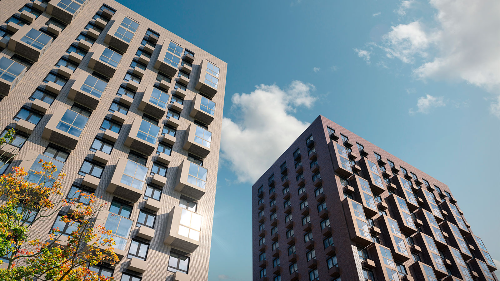 «Аэронавт». Проект состоит из двух корпусов высотой 12 и 14 этажей, фасады облицованы стильной и долговечной плиткой под клинкерный кирпич, а застекленные лоджии, закрытые балконы и французские окна придают облику зданий особую выразительность.