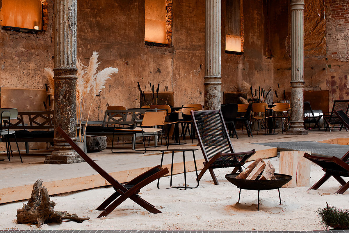 «Третье место» расположилось в особняке первой трети XIX века в центре Петербурга. Сегодня это один из центров культурной жизни города, где можно увидеть не только сохранившиеся парадные интерьеры, но и окунуться в атмосферу города. Во внутреннем дворе скрывается настоящий пляж с горящими кострами, золотым песком и шезлонгами. В самом здании разместились выставочные залы, лекторий и кинотеатр.
